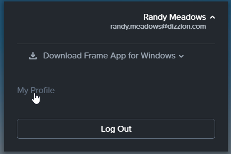If you would like to log out of your Frame account, simply click on your name in the upper right corner of the page and select “Logout.”