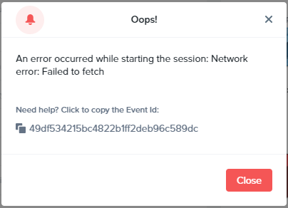 As an end user, you will likely need to reach out to your organization's IT help desk for any issues you may run into with your Frame account. If you are presented with an "Oops!" error, please copy the "Event ID" provided to you in the dialog:
