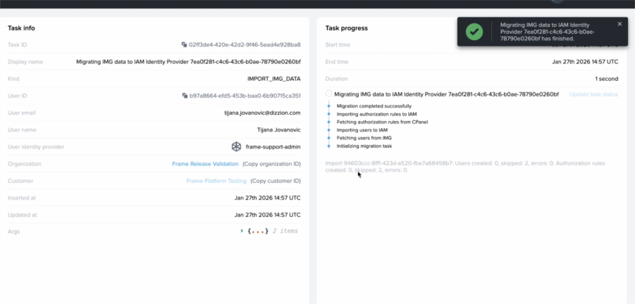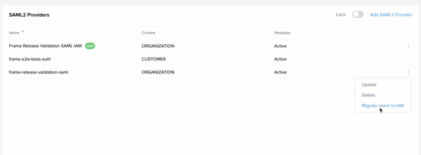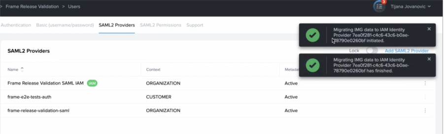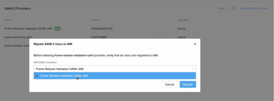 As part of an ongoing platform modernization effort, Frame is migrating SAML2 authentication services to a new domain structure.