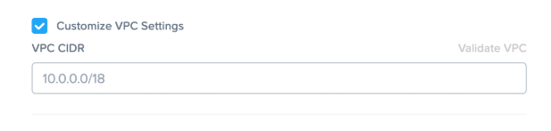 Select this checkbox to specify a specific VPC/VNET CIDR. If you plan to connect this VPC/VNET to another network through a peer, VPN, or other private connection, you need to specify a non-overlapping CIDR (e.g.,