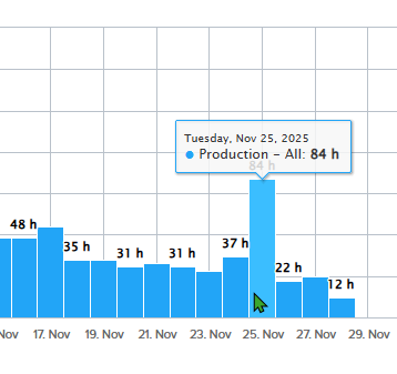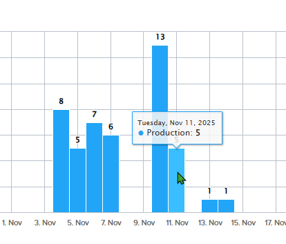 In this example, we can see there were 3,539 total production instances on February 10th, 2022.