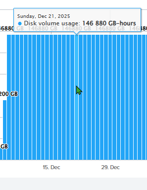 The total disk volume usage (in GB hours) will always be displayed in the bottom left corner below the graph.