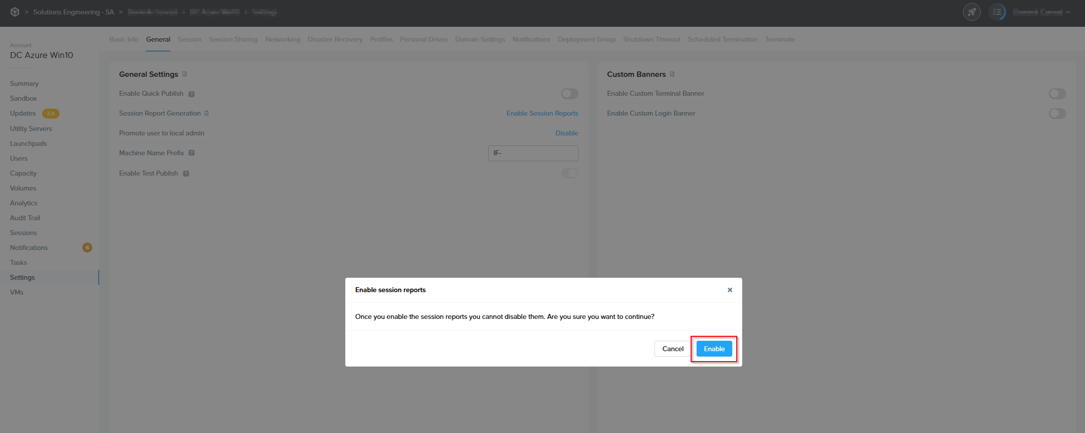 To enable session reports, navigate to the Settings tab of the Nutanix Console and click the “session reports generation” option.