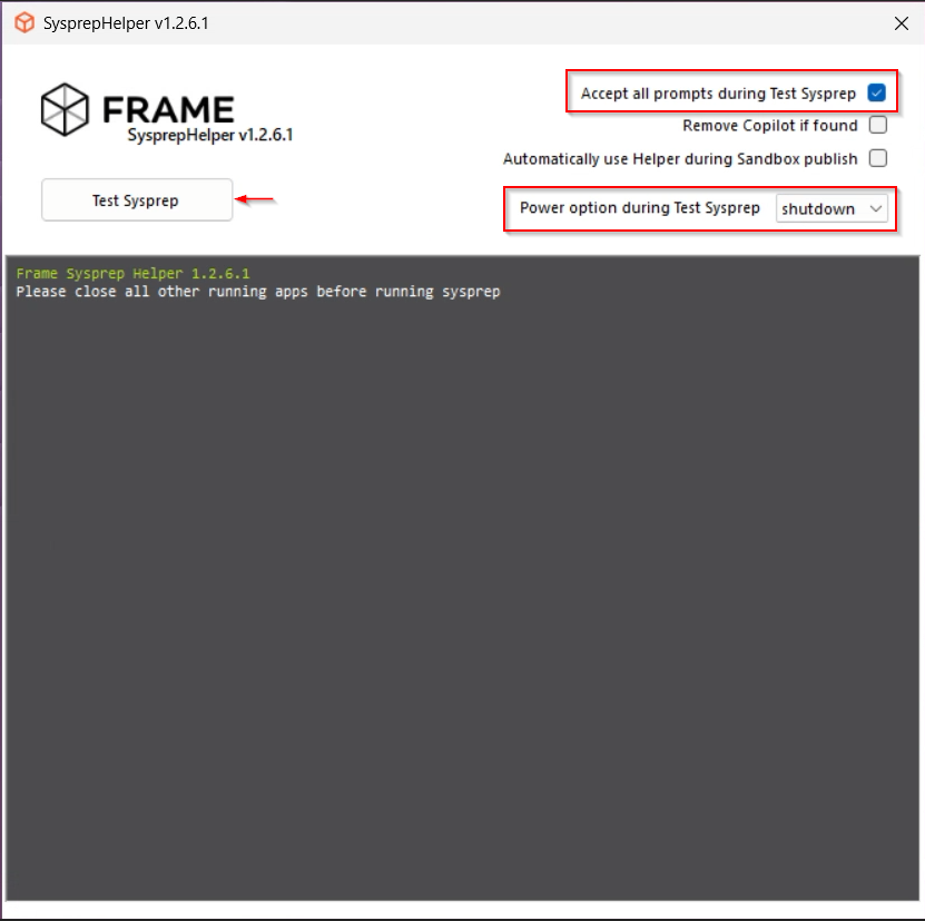 - Click on "Test Sysprep" to start the process