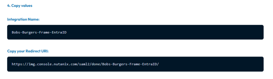 Your SAML2 Integration Name is a case-sensitive, URL-friendly, unique, and descriptive value that represents the integration between your Entra ID and Frame. This value can have only letters, numbers, and the dash symbol; no spaces or punctuation are allowed.