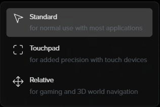 When the Mouse Mode icon is clicked, the Mouse Mode selection dialog window will appear.