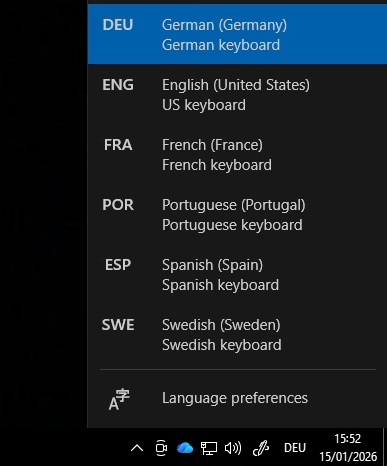 In a traditional Windows desktop environment, it is fairly easy to switch between multiple keyboard layouts by clicking on the keyboard icon located in the system tray. The keyboard switcher button will be in the bottom right corner of the keyboard.