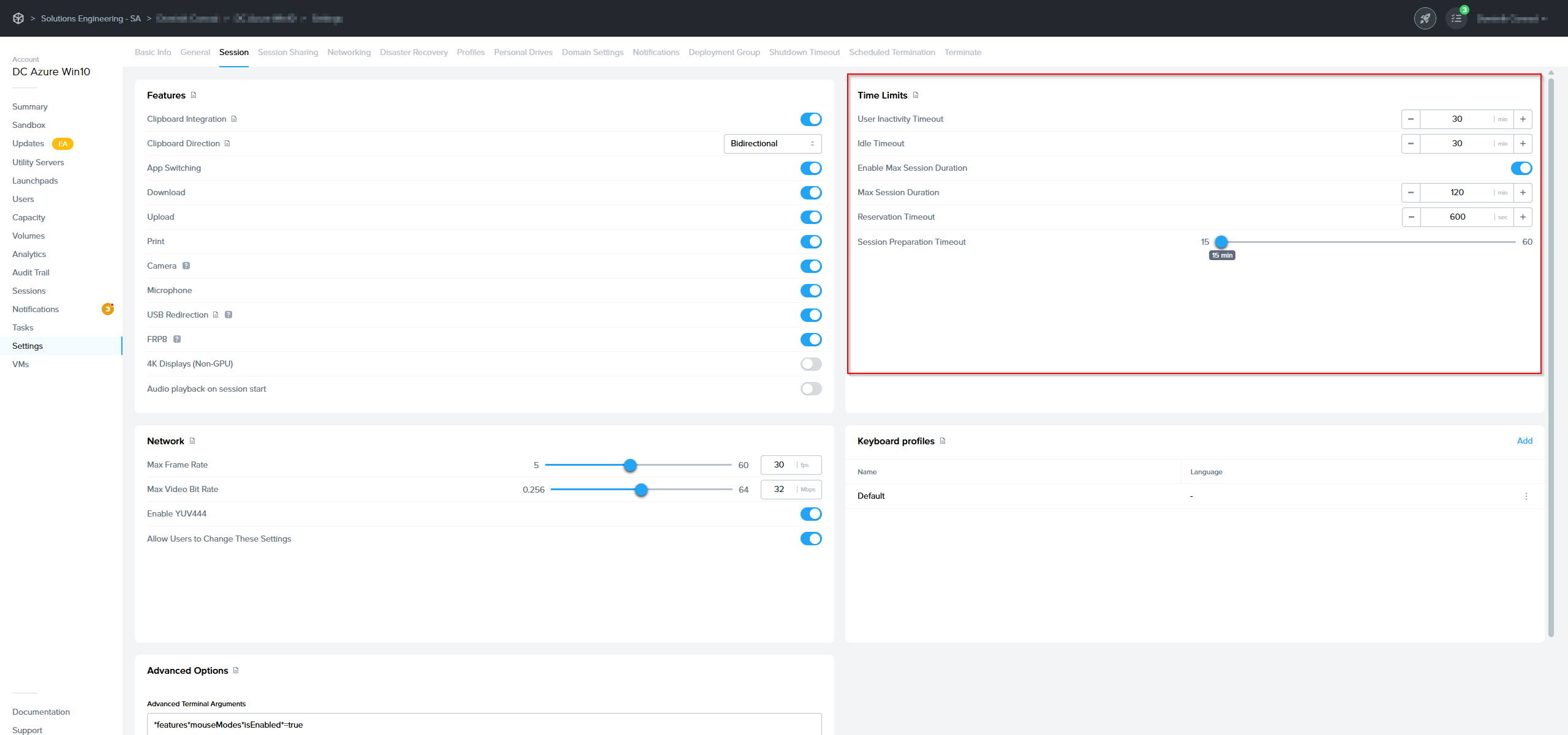 Session Settings - Time Limits