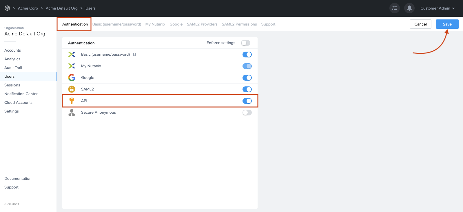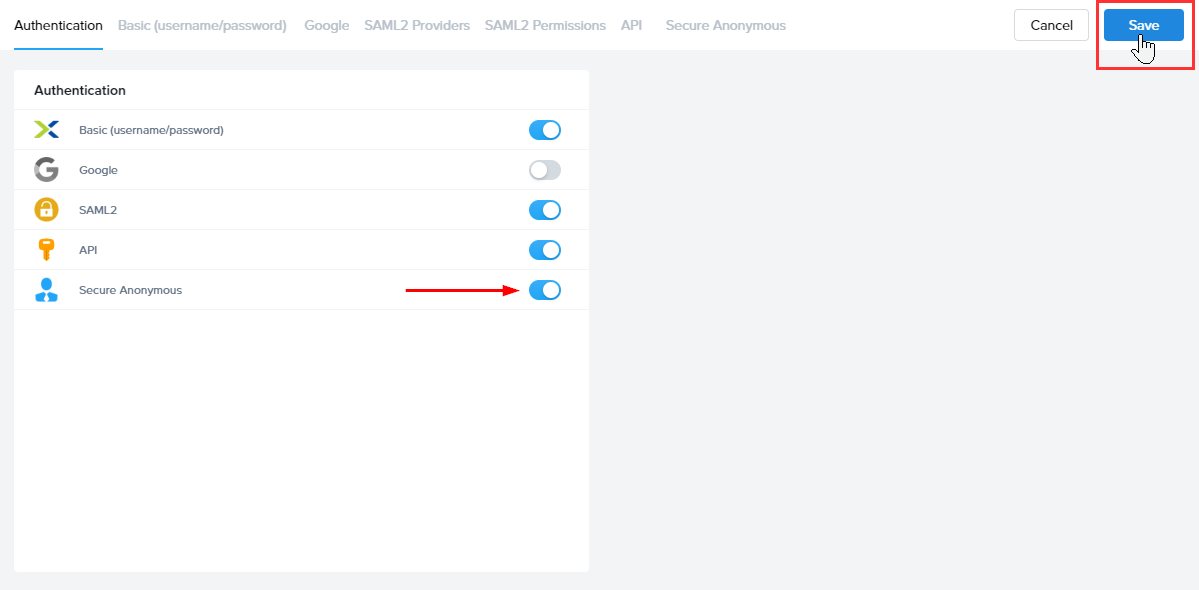 - Enable the Secure Anonymous option under Authentication and save; a new Secure Anonymous tab will show up.