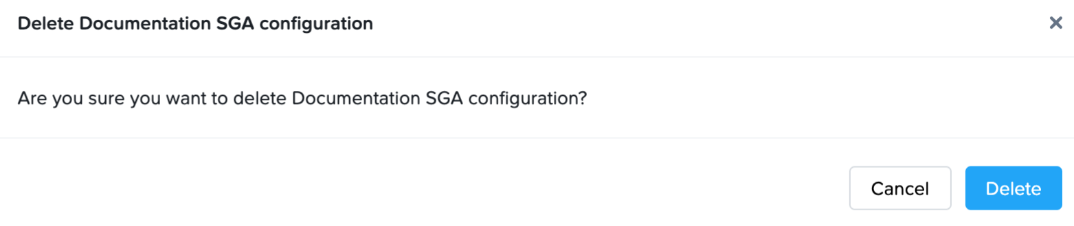 3. You will be asked to confirm that you wish to delete the SGA cluster. Click **Cancel** or **Delete**.