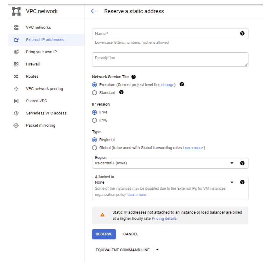 Under “Networks,” click Attach to Subnet to assign the appropriate VLAN to the new VM. You can set a static private IP address of the SGA VM at this point or use Option 4, as discussed below, once the VM has been provisioned.