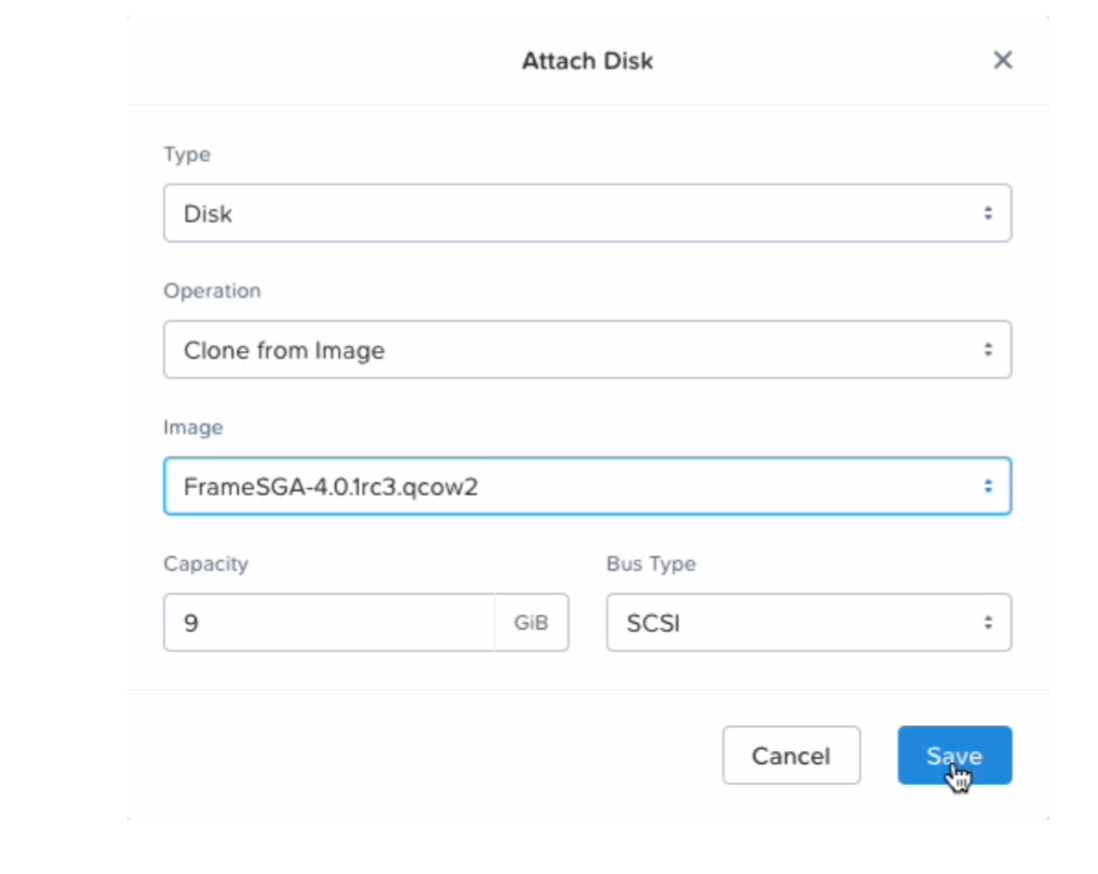 Download the Frame SGA disk image from the Downloads Page for the hypervisor/infrastructure on which you wish to deploy the SGA.